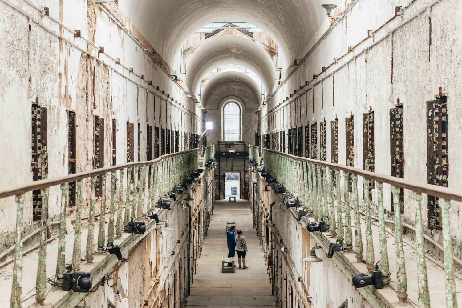 Kendt for sin storslåede arkitektur og strenge disciplin, var dette verdens første sande 'fængsel', et fængsel designet til at inspirere til anger, eller sand fortrydelse, i fangernes hjerter. Oplev, hvordan selve bygningen var et arkitektonisk vidunder; det havde rindende vand og centralvarme før Det Hvide Hus. Forundre de hvælvede, himmelbelyste celler, som engang holdt mange af USA's mest berygtede kriminelle, inklusive bankrøveren 'Slick Willie' Sutton og Al Capone.
