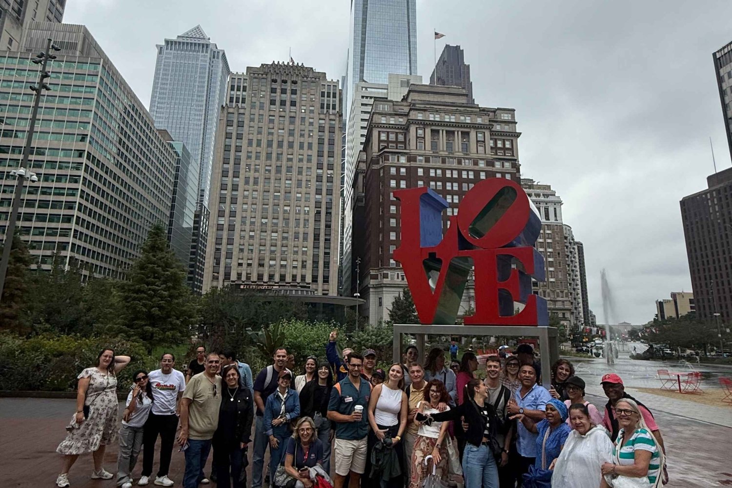Jatka kuuluisalle LOVE Parkille ottamaan kuvia ikonisella LOVE-kyltillä ja ihailemaan majesteettista Philadelphian kaupungintaloa. Matkusta sitten Benjamin Franklin Parkwayta, joka tunnetaan myös nimellä Avenue of Flags, kunnes saavut Philadelphian taidemuseoon, jossa et voi jättää väliin valokuvaa Rocky-patsaan kanssa ja mahdollisuutta kiivetä sen legendaarisia portaita.