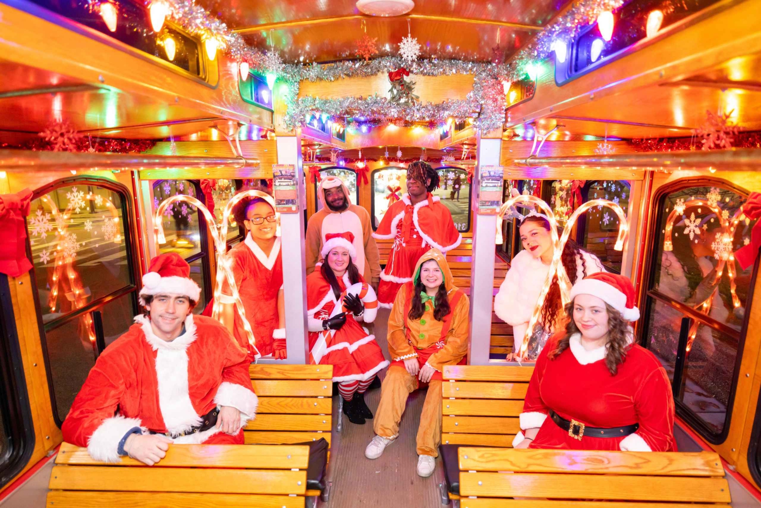 Sali a bordo del trolley e ammira le luci, le decorazioni e la musica natalizia. Passa da Smedley Street, dove potrai scendere e sgranchirti le gambe. Prosegui verso il Miracle on 13th St. (a partire dal 1 dicembre), il Christmas Village/Love Park, il City Hall e Dilworth Plaza, il Comcast Building, Washington Square e Franklin Square.