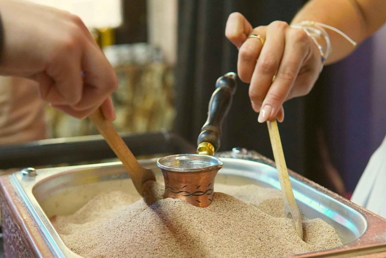 Gasten maken authentieke Turkse koffie met behulp van de zandbrouwmethode, ontdekken de geschiedenis ervan en leren waarzeggerij. Ze gaan naar huis met handgemaakte cadeautjes en gepersonaliseerde koffiemelanges.