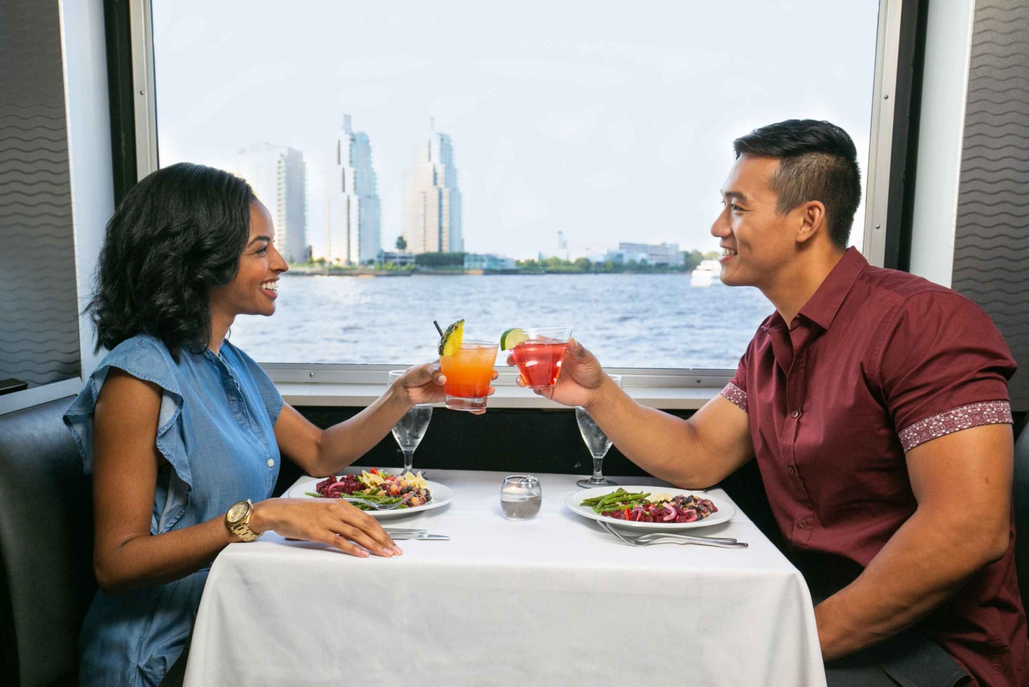 Cruise ombord på Spirit of Philadelphia Buffetbrunsj, lunsj eller middag Ubegrenset mimosa (hvis brunsj er valgt) Ubegrenset kaffe, varm te og iste DJ ombord