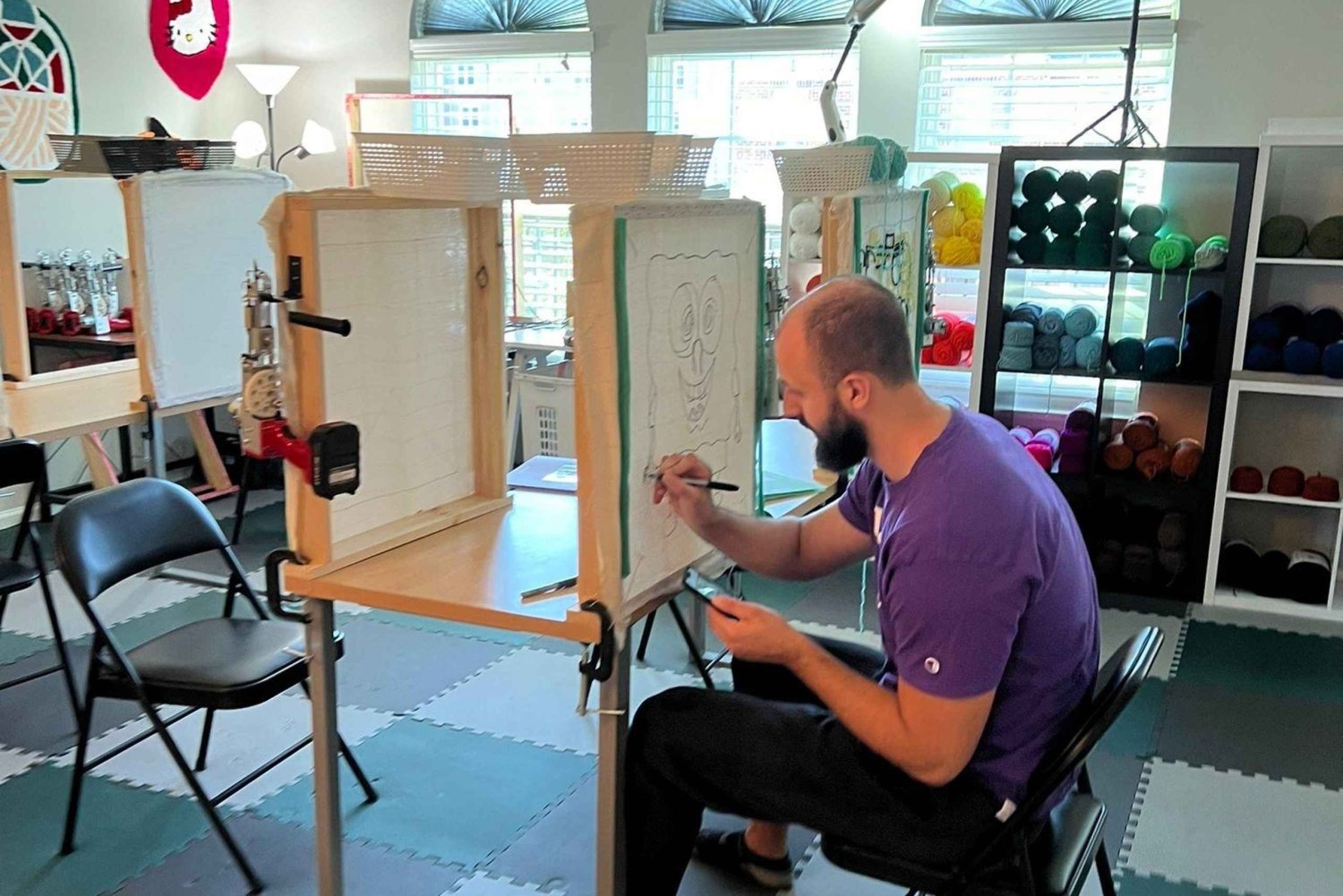 Ønsker du å utforske din kreative side? Bli med på dette morsomme og nybegynnervennlige tufting-verkstedet i Philadelphia! Du vil lære å bruke en tuftingpistol, eksperimentere med fargerike garn og lage ditt eget mesterverk på en 50 x 50 cm ramme. Ikke bekymre deg hvis du er nybegynner innen tufting! Denne kursen er laget med tanke på nybegynnere, og du vil få mye praktisk veiledning gjennom hele økten. Lær hvordan du håndterer tuftingpistolen, utforsk ulike mønstre og få individuell hjelp mens du gir liv til designet ditt. Slapp av i en vennlig og støttende atmosfære, hvor du kan slappe av og nyte den kreative prosessen. Du vil også lære hvordan du forbereder lerretet, øve på nybegynnervennlige teknikker og forstå sikkerhetsregler. Etter at du har laget ditt tuftede kunstverk, legger du til siste finpuss som bakgrunn, liming og barbering. Under dette 2,5-timers workshopen blir du servert gratis snacks, te eller kaffe mens du lærer alt om tufting. Gå hjem med ditt eget unike kunstverk, et varig minne om en dag fylt med moro, kreativitet og selvuttrykk!